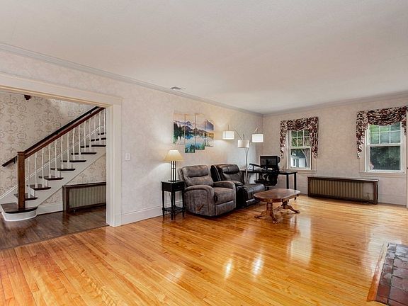 Enjoy truly spacious living in this charming colonial. This 4 bedroom, 1.5 bath home is conveniently located just minutes from Milford Town Park, the local schools, shops and restaurants. Sun-lit rooms, gleaming floors, and high ceilings throughout welcome you upon entering. Relax in the large front to back family room with hardwood floors, stately wood-burning fireplace, and two entrances to the four season sun room. Gorgeous formal dining room. Large eat-in kitchen with stainless steel appliances including double wall oven, recessed lighting & ample cabinet/counter space. Main level also includes a half bath. Second floor boasts four equally generous bedrooms, including primary bedroom with its own fireplace. Fantastic level fenced-in yard, ample parking, and storage shed. A must see!