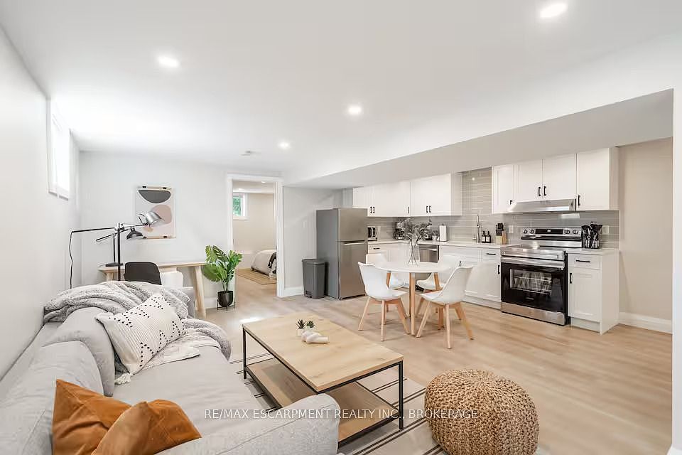This beautifully renovated, fully furnished 2-bedroom lower-level unit offers a perfect blend of modern finishes and cozy comfort. The open-concept layout features a stylish kitchen with stainless steel appliances, plenty of counter space, and contemporary cabinetry. Both bedrooms are spacious and inviting, with ample storage throughout. The updated 4-piece bathroom adds a touch of comfort and style, while the in-suite laundry and private entrance provide everyday convenience. Outside, enjoy your own fenced patio-perfect for relaxing, entertaining, or enjoying a quiet evening outdoors. Located in a peaceful, family-friendly neighbourhood, you're just minutes from parks, waterfalls, shopping, and downtown Hamilton. With quick highway access, it's a great midpoint between Toronto and Niagara Falls. Move-in ready and fully furnished if desired, this unit is the perfect space to call home.