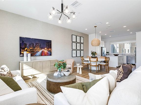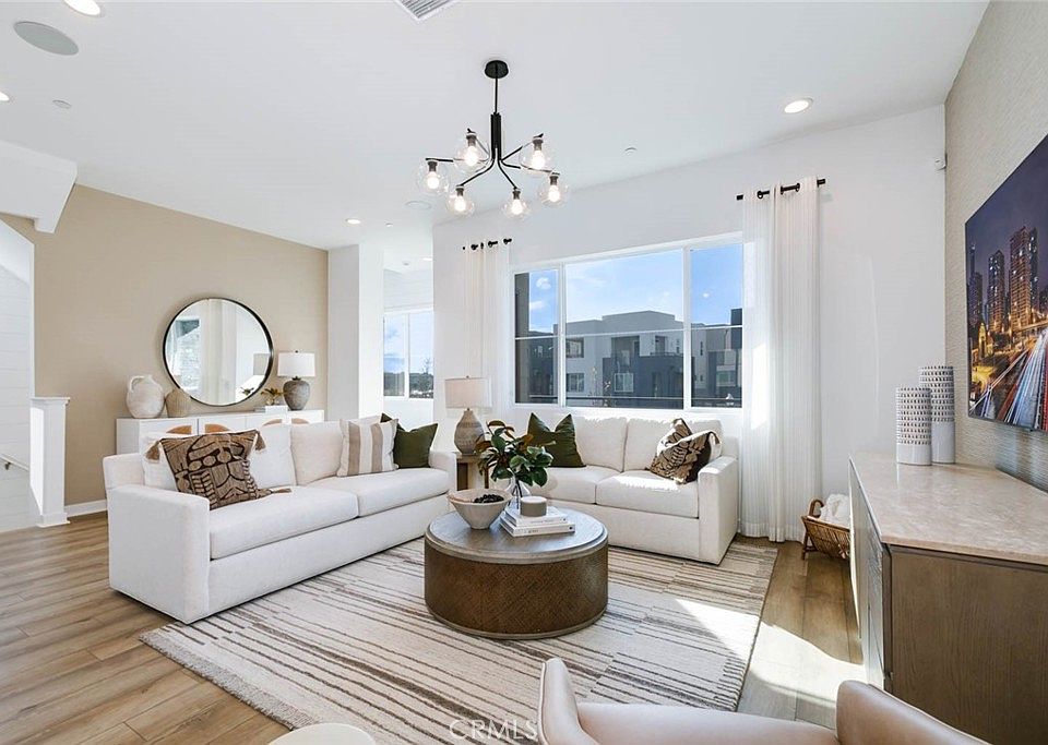 FULLY FURNISHED by a designer, all you have to do is pack your toothbrush! This exquisite move-in-ready model home features 4 bedrooms, 3 bathrooms, and a dedicated office across 2,100 square feet of thoughtfully designed living space. Ideally situated in Solis Park, a vibrant enclave within the prestigious Great Park master-planned community, this residence offers a perfect blend of comfort and convenience. The first floor includes an attached two-car garage, while the second level boasts a spacious great room, a contemporary kitchen, and a bedroom with a full bathroom. The kitchen is elegantly appointed with quartz countertops, upgraded cabinetry, and brand-new stainless-steel appliances. The third floor showcases the luxurious primary suite and two additional bedrooms. Zoned for the highly acclaimed Irvine School District, the home is just a short walk from Portola High School, the K–8 Solis Park School, and the community’s amenities, including a park, pool, and clubhouse. Additional highlights include fully paid-off solar panels and the inclusion of all furniture, TV, and washer/dryer—making this truly a move-in-ready home you won’t want to miss.