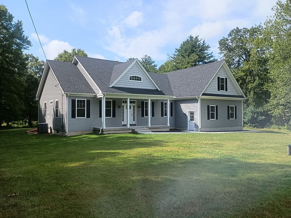 New Construction Just completed !! Stunning custom ranch located on almost 2 acres open field, gorgeous open lot abutting conservation land.. 3 bedrooms, 2 1/2 baths.. hickory hardwood floors through out entire house. custom kitchen with stainless steel appliances, quartz counters, breakfast bar... central Vacuum, heat & A.C. oversized composite deck overlooking private back yard. even a finished bonus room above garage!! .