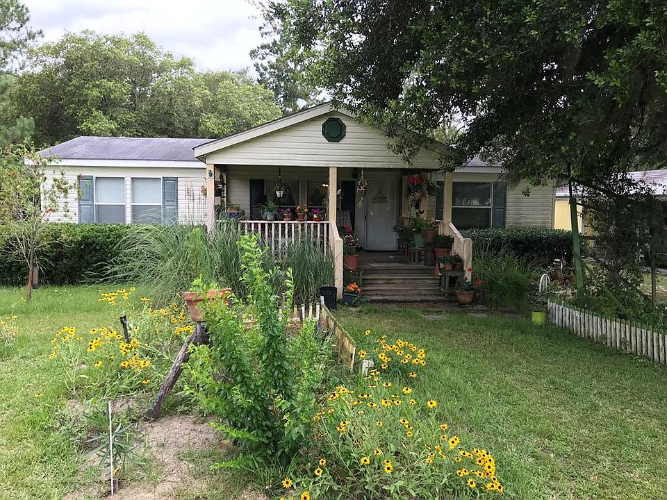 Lovely property. High land with gentle slope to stream in back. Very nice land scape, plants, trees, flowers, gardens, front and back porch, nice hedge on each property line, Home is in good condition throughout. Kitchen island holds a stainless steel sink and has an eating bar, and includes a view of back porch and yard. Laundry room just off kitchen at back door. Master Bath features a double vanity and walk in shower. Detached carport with storage, two additional storage buildings, and a nice chicken pen with fenced chicken yard. This property has much to like and enjoy.