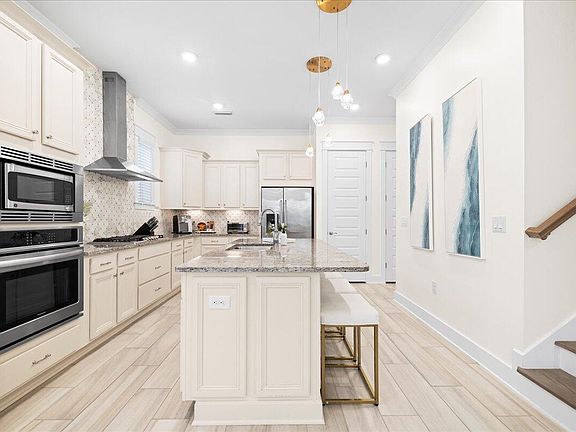 Prominent Price Enhancement! Recently updated and newly furnished, 73 Dune Comet Unit B is a charming triplex townhome in the heart of Prominence, freshly painted and perfectly situated along the scenic community green space. Offering three spacious bedrooms, two and a half baths, and a two-car garage, this coastal retreat is move-in ready and designed for effortless beach living.Step inside to find soaring 10-foot ceilings, elegant ceramic tile flooring, granite countertops, and stainless steel appliances in a light-filled, open-concept layout. The updated kitchen with breakfast bar flows seamlessly into the dining area, where French doors open to a spacious outdoor deck overlooking the peaceful green space--perfect for outdoor dining or relaxing in the fresh Gulf breeze. The living complete with new designer furnishings and multiple seating areas, offers a welcoming space to unwind after a day on 30A.