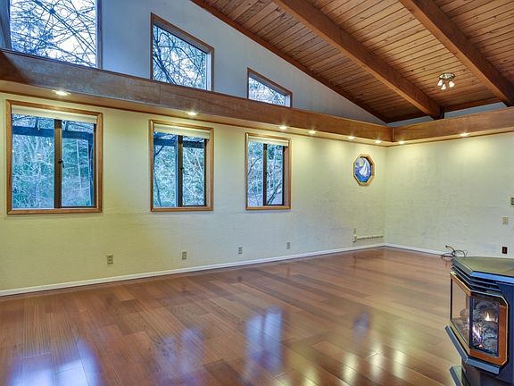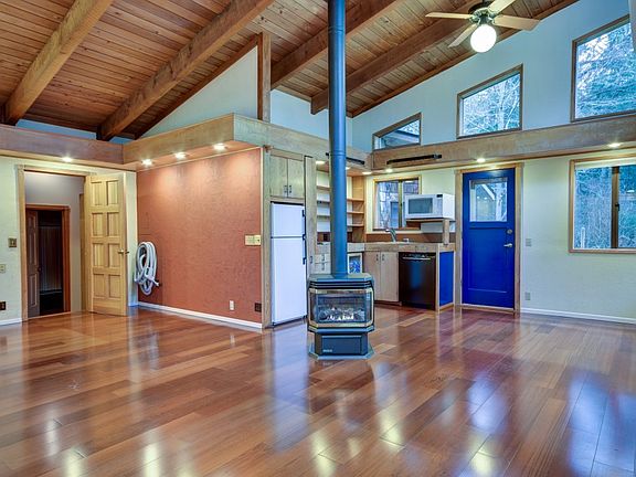 Here is your chance to own your fairy tale tree house situated in its own enchanted forest. Cookie cutter; not even close. Come experience this jewel with all its privacy & pizazz! Super cool vaulted hot tub room, perfect for relaxing without the wind & rain. Great light & efficient heating & cooling with both a propane stove & ductless heat pump. Large wrap around deck & covered front porch, spacious heated 2 car garage plus nice studio area above. Don't miss the outside pantry off the kitchen!