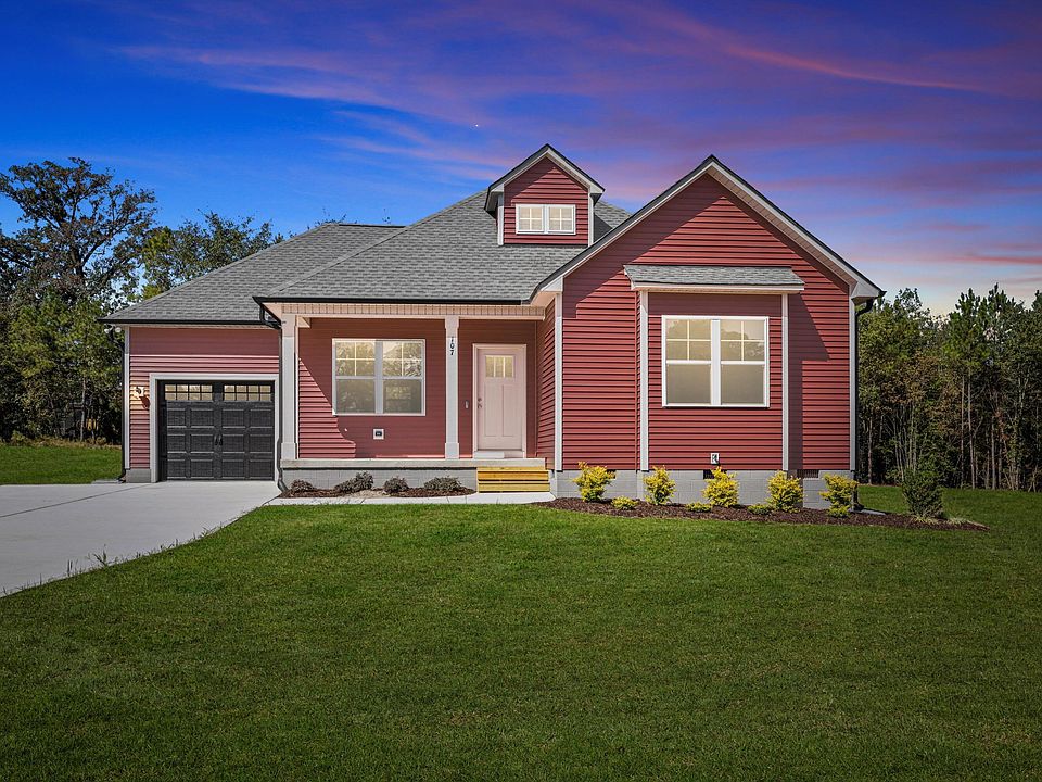 TWO ACRE cul-de-sac lot! Welcome to your tucked away oasis. This charming ranch-style offers privacy at the end of a street and views of lush mature hardwoods. The property boasts numerous upgrades, including designer picked finishes, prewired security system, doorbell camera, granite countertops, and much more! Step inside to find open living creating an airy ambience with an abundance of windows for natural light. The kitchen is grand with endless cabinets and a massive walk in pantry. Your primary is grand with an accent wall, custom walk in closet, dual sinks and a walk in tiled shower! 19 miles to Fort Liberty for an easy commute!  NOTE: Under construction. Photos are of previously built home/floor plan.