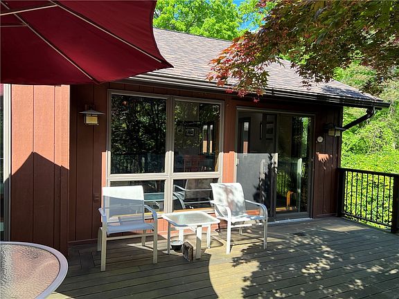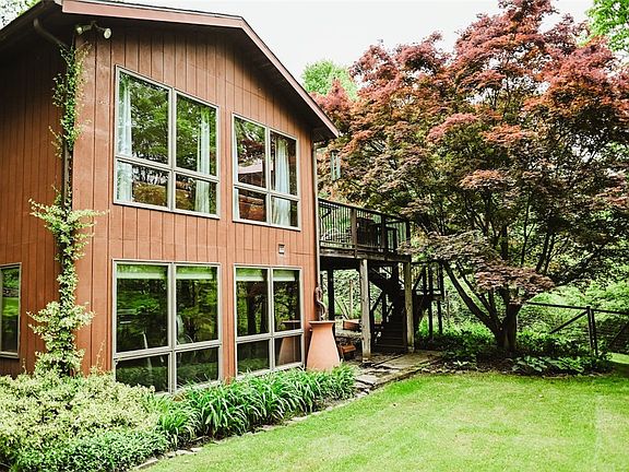 Showcasing modern sustainable living, the home features solar panels and radiant floor heating. Recent updates include a brand-new roof in 2023, a new water treatment system also added in 2023, and a new furnace with a heat pump installed in 2021. This system is connected to owned panels in the Renovus Solar farm, covering a majority of your heating and cooling bills with a low monthly electric bill, underscoring the home's commitment to efficiency and modern comfort. The exterior is a sanctuary of privacy and peace, elegantly defined by expertly crafted stone walls and a charming flagstone patio that enhances the allure of the outdoor environment. Completing this remarkable property is an oversized garage, offering abundant space for vehicles and additional storage. This contemporary home epitomizes refined living in a private, peaceful, and relaxing oasis to call home.