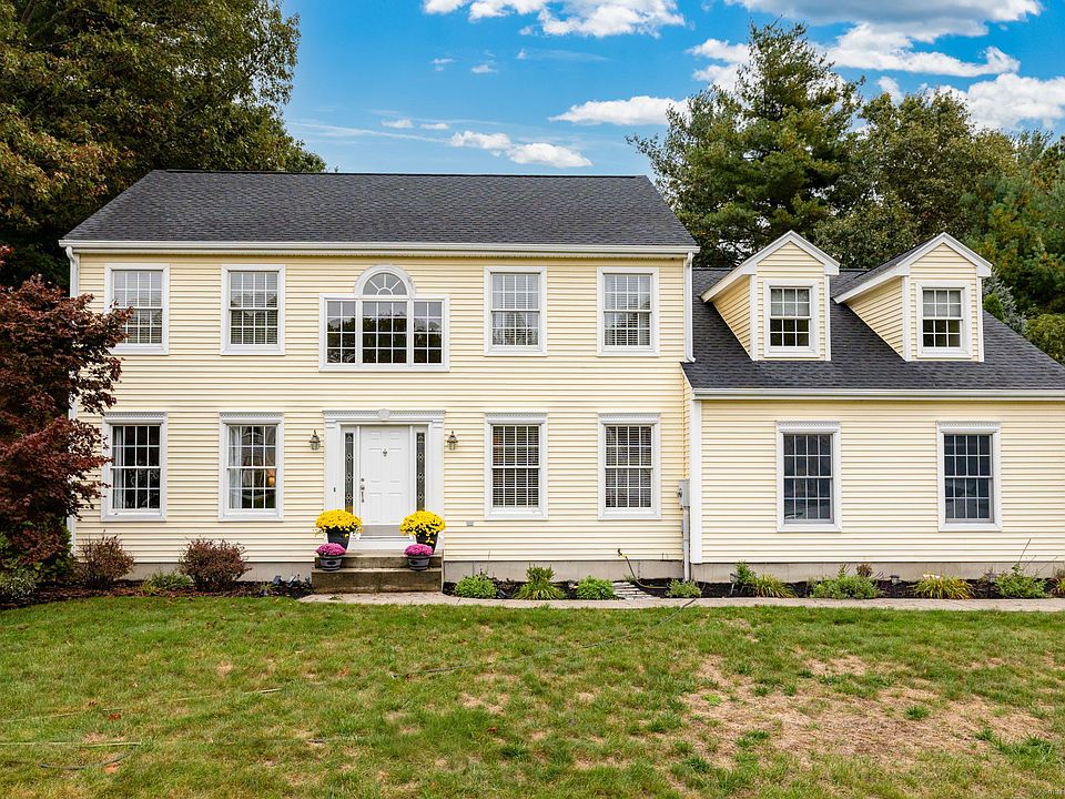 THE BOX CHECKER! Built in 2001 by local LePage Builders, this 3/4 bedroom Colonial has natural gas, central air, public water, a quiet CUL-DE-SAC street and is nestled amongst other high-end homes! The large, eat-in kitchen features plenty of light oak cabinets for lots of storage, GRANITE counters, stainless steel appliances, JennAir gas cooktop, tile floor, beautiful lighting and sliders to the deck for easy entertaining! Maple floors grace the living room with fireplace, the perfect spot to cozy up for winter! Dining room with hardwood floors, crown & chair rail molding. Separate OFFICE with hardwood floors & french doors for privacy working from home! Upstairs you will find a primary bedroom suite that looks like a SPA RETREAT! Fall in love with the bedrooms vaulted ceiling with palladian window that elevates the open & airy feel, walk-in closet & full bathroom with SOAKING TUB, walk-in tiled shower, faux wood tile flooring, built-in shelves, long vanity with makeup area & QUARTZ counters! The second full bathroom has been updated with QUARTZ counters. Need another room? The HUGE BONUS ROOM with wall to wall carpet can serve as a guest space, office, hobby room, rec space, whatever you need! The two other bedrooms have hardwood floors. Second floor laundry. Want MORE? Check out the outdoor space! Enjoy the deck overlooking the above ground oval pool, stamped concrete patio, storage shed & LEVEL backyard! This ORIGINAL OWNER home is a GEM! Prepare to fall in LOVE!