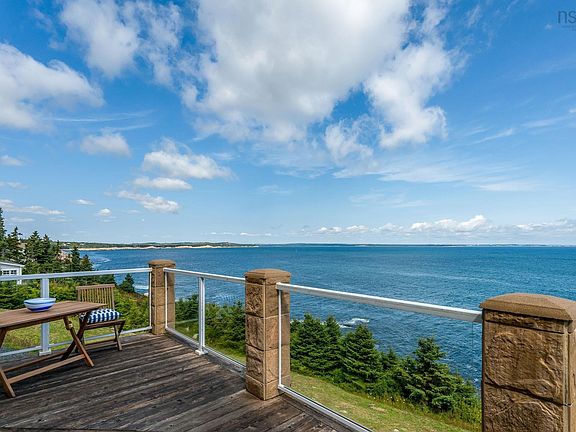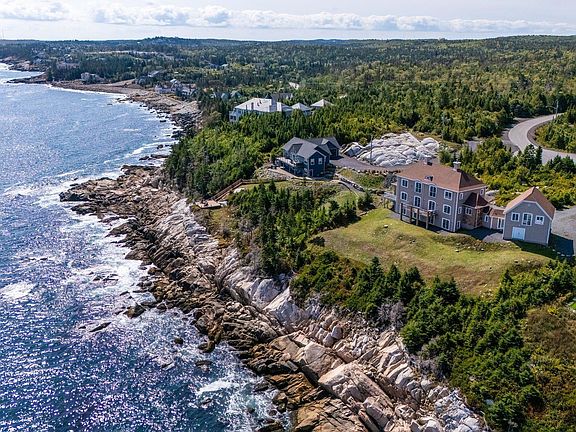 Discover the ultimate in coastal luxury at 73 Kestrel Court, a custom-built estate just minutes from Halifax. Nestled at the end of a quiet cul-de-sac, this 6266 sq ft French Provincial-style home sits on over 64,000 sq ft of professionally landscaped oceanfront property, offering uninterrupted views of the Atlantic Ocean. From the moment you step inside, the home impresses with its timeless design, high-end finishes, and an abundance of natural light streaming through expansive windows. Nearly every room captures the spectacular ocean views, creating a serene and elegant living experience. The main living room features a propane fireplace and opens onto a spacious balcony—perfect for relaxing or entertaining against a backdrop of open water. The space flows effortlessly into the formal dining area and the gourmet kitchen, where handcrafted cherry cabinetry, double granite-topped islands make this a dream for any chef. A large walk-in pantry offers additional prep area, appliances, and even its own private balcony. Above the dbl garage, you'll find a large loft with a full bathroom, ideal as a guest suite, home office, or media room. Upstairs, the grand staircase leads to a beautifully appointed family room with a coffered ceiling, and then to the primary suite—a true retreat featuring floor-to-ceiling windows, a luxurious spa-like ensuite with a walk-in shower, soaker tub, double vanity, fireplace, generous walk-in closet, and a private staircase to the main floor. This level also includes a second bedroom with full ensuite. The lower level continues the theme of luxury and space, with a large rec room that opens to the outdoors, flanked by an additional bedroom & a flex room, each featuring walk-outs, ensuite baths, and walk-in closets. Panoramic ocean views, exceptional craftsmanship, and thoughtful design throughout.