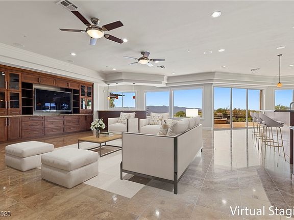 Inside of Anthem Country Club a guard gated comm. w/beautiful landscape. A second gate for exclusivity. This luxurious Tuscan resort oasis home includes panoramic views of the City, Las Vegas Strip, and Mountains. A 2-story estate home which features & invites you into a front courtyard w/fireplace, casita w/separate entrance, glass wrought iron entrance door, wine cellar, impressive glass elevator, formal living & dining, family rm., 5 bdrms ea. w/ensuite, 7 baths, 4 interior fireplaces, loft, theater rm. 4 car gar. On the 2nd floor from each room you have access to a balcony, relax and see your view! Step out to the backyard and relax near your infinity pool, fire pit and BBQ area. At night see the twinkle of lights from your view & feel the calmness that comes over you. Anthem Country Club-includes a golf course, tennis courts, fitness ctr (with membership). Call now and set your appointment to view this estate.
