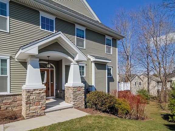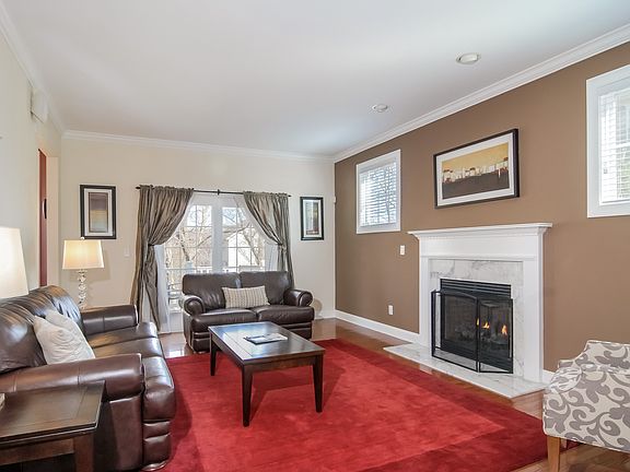 Great design paired with sophistication in this award winning 3,000 sq. ft town home. Over $60,000 of upgrades... Post-modern architectural style w/ private entry. Drama abounds with a 2 story foyer, custom mouldings, 9 ft ceilings, French doors, pillars, marble gas fireplace & hardwood flooring. Main level library, private decking & formal dining room off a spacious kitchen w/granite, stainless appl. & lots of natural light. A master suite that makes a statement includes a whirlpool, tile shower w/seating, dual sinks & walk-in dressing closet. A gigantic walk out great room is located on the garden level. Pool, tennis, fitness center & Clubhouse ideal for parties or just sitting by the fire. Close to restaurants, theater, train & shops.