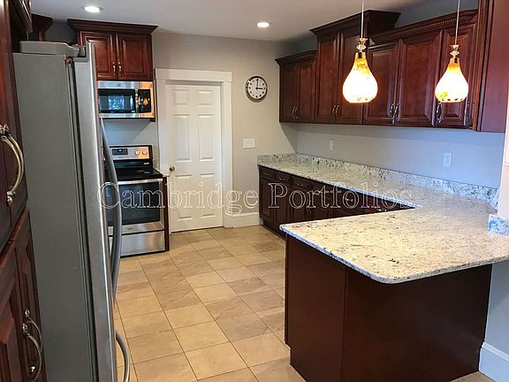 Renovated spacious 2025 sq.ft. 2 levels 4+ bedroom/2 bathroom condo on 2nd and 3rd floor of 2 family house in Belmont. 1st level: Open space layout with brand new kitchen with all new cabinets, granite countertops, stainless steel appliances including dishwasher, microwave and french door refrigerator; formal dining room; living room with fireplace and access to enclosed 3 season sunroom; additional room for office space; 2 bedrooms; full renovated bathroom; enclosed rear deck; laundry machines. 2nd level: open space large family room, 2 bedrooms, full renovated bathroom. Hardwood floors. Central air. 2 off street tandem parking. Short walk to #73 bus line to Harvard Square. No pets. Available Now.