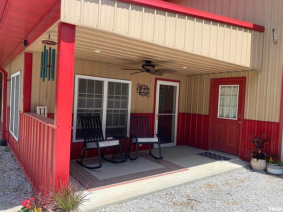 Beautiful custom built 2013 barndominium has an 8 car garage that is 74x50. It has 2 camper doors, 2 lofts, 2 tool rooms and storm shelter inside the garage. There is wood heat which heats the floors through out. The home is in a great location between Carbondale and Murphysboro. It is close to town and the lakes on 6.2 acres. The great room has vaulted ceilings, stomped concrete floors and oversized fans in the living space and garage. The floor plan is an open concept with master bedroom on the main level, with a large walk through bathroom, walk in closet to the laundry room. The main level also has a beautiful kitchen with maple cabinets, pantry and breakfast bar. There is also a home office and gym on the main level. Upstairs there is an open loft common area for the 3 bedrooms, jack and jill bathroom and all the bedrooms have oversized closets so there is plenty of storage. Outside there is a 3 seasons room overlooking a beautiful yard and surrounded by woods for privacy.