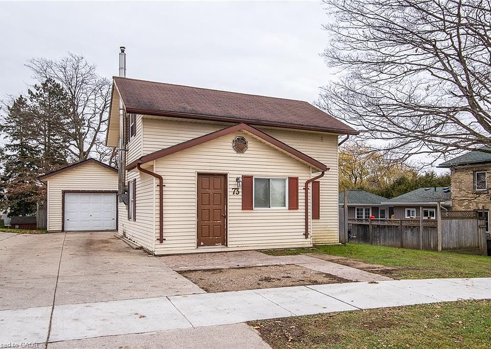 This story-and-a-half century home in the welcoming community of Drayton is an ideal 4 bed, 1 bath home for a growing family at an affordable price. The main floor features a spacious eat-in kitchen with abundant cabinetry and counter space. Enjoy the convenience of main floor laundry and an insulated porch perfect for a home office. The primary bedroom is located on the main level, with three additional bedrooms upstairs providing plenty of space for family or guests. Outside, you'll appreciate the oversized lot with a garden shed, a concrete driveway with parking for three vehicles, an oversized single detached garage (14'x24') offering great storage or workshop potential. This home blends charm, functionality, and small-town living and is ready for you to move in and make it your own!