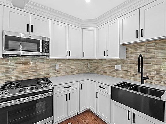 OPEN HOUSE CANCELLED, OFFER ACCEPTED. Newly constructed 3 bedroom, 3 Full bathroom home has an open concept, modern feel. Convenient prime location, this gorgeous & uniquely designed home has an open kitchen concept with features that include brand new, top of the line stainless-steel appliances, quartz waterfall island, large under-mount sink, tile backsplash, soft closed cabinets & beautiful light fixtures to name a few. There are three very generous sized bedrooms including two master bedrooms with their own private bathrooms, his and hers closets. This home also has a two deeded parking spaces, laundry room, hardwood flooring throughout, a beautiful balcony, a private backyard and patio space for. Central Air, energy efficient windows, a wide/long driveway, convenient location for commuters, shopping, and schools are just some of what makes this move-in ready home incredible! Virtually staged*