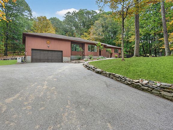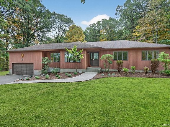 As you drive up to this enchanting 3.2 acre parcel you are met with mature trees and professionally landscaped garden beds. You will be enamored by the calming waterfall, majestic koi pond, and oversized patio in the tranquil backyard that is ideal for relaxation, or entertaining. A freshly seeded, fenced-in, level lot also provides ample space for fun in the backyard. This idyllic ranch is tucked up off the road giving you privacy and a true sense of serenity. As you enter the freshly painted interior you will notice gleaming hardwood floors and a stone fireplace that will quickly become the centerpiece of your day to day. An oversized picture frame window adorns the sitting room giving you a sense of indoor-outdoor living. The spacious formal dining room leads you into the light-filled kitchen with a wolf cooktop peninsula, new fridge, and eat-in-dining area. Just off the kitchen is a main-level laundry/mud room that can be accessed through the 2 car garage. Three bedrooms and two full bathrooms complete the main level, including a primary ensuite. This ranch home also features central air, a whole house generator, 3 year old furnace and boiler-mate (energy efficient), 200 AMP electric and a full sized basement with ample storage and workshop. Set in bucolic Warwick just minutes from the Village of Warwick and Village of Florida, wineries, breweries, farm stands, hiking trails and so much more. Make this Warwick gem your home sweet home. Only 1 hour from NYC.
