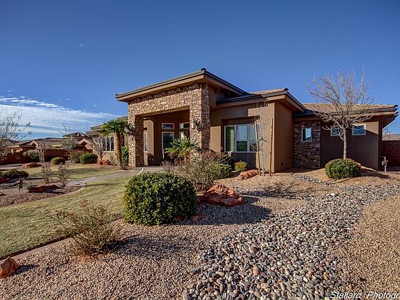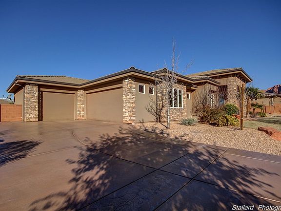 Immaculately kept custom one level living surrounded by the beautiful Red Mountains of Ivans. Attention to every conceivable detail was made in this custom builders home. There is a gorgeous wood ceiling in the entry. This beautiful home has been professionally landscaped and is fully fenced. Upgrades abound and include 8 cherry wood solid core doors throughout, 10 ceilings throughout with double coffered ceilings in the master bedroom, guest suite and great room. Upgraded Cherry cabinetry in the large spacious kitchen include a walk-in pantry, oversized cherry wood hood, oversized island, gas built-in range, convection oven/microwave combo with a gas oven. Central Vac throughout with quick-sweep vent in the kitchen. Rock fireplace in the great room with mantle. Master suite boasts his and her walk-in closets, double sinks, jetted tub and glassed shower. The 3 car garage was upgraded as a side load with super clean epoxy floors, utility sink, and man door. There are oversized closets throughout giving you enormous amounts of storage. Large covered patio has gas hook up for your hassle free family b-b-qs and has three separate doors for access. Home also has 2 separate furnaces and air conditioners, two hot water heaters and a soft water system.