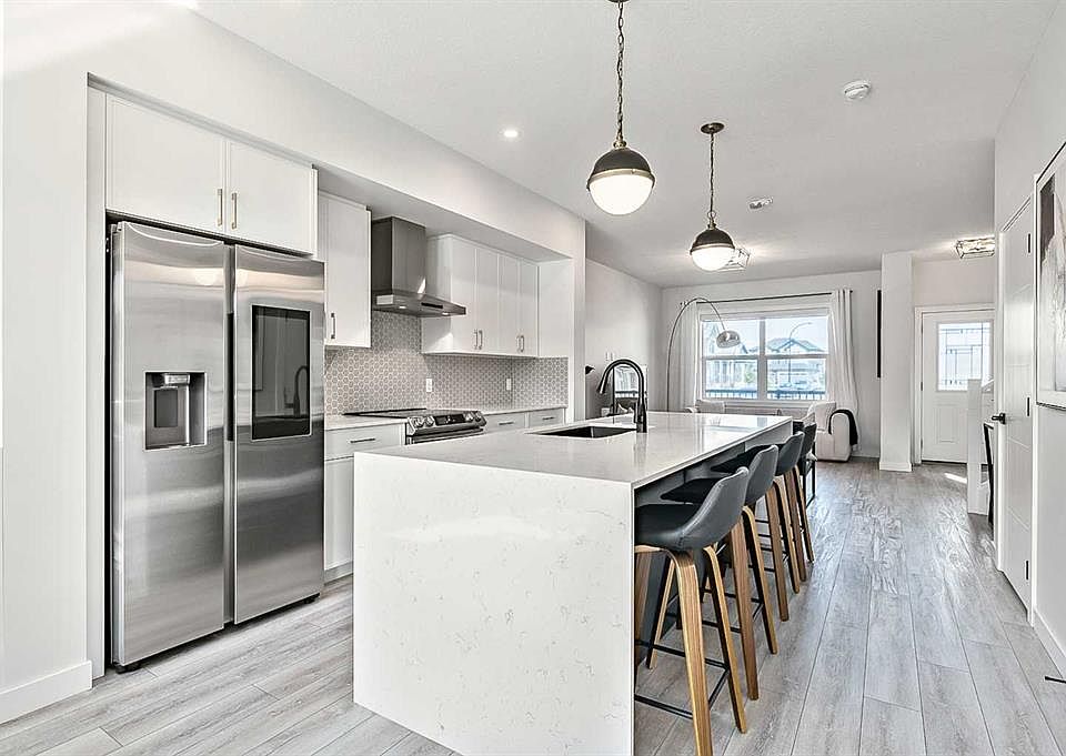 Stunning 3-bedroom, 3.5-bath detached home in Legacy, now featuring a BRAND-NEW, FULLY LEGAL BASEMENT SUITE — perfect for RENTAL INCOME or EXTENDED FAMILY LIVING. Offering 1,634 sqft of modern living space across the main and second floors, this home was built in 2022 and boasts numerous upgrades, including a beautifully designed KITCHEN WITH QUARTZ WATERFALL ISLAND, UPGRADED SAMSUNG APPLIANCES, TWO-TONE CABINETRY, a dedicated hood fan, and a built-in microwave. The open-concept main floor features a spacious dining and living area, perfect for entertaining. Upstairs, you’ll find three generous bedrooms, including a primary suite with a private ensuite, plus a versatile bonus room at the center. The home includes stylish upgrades like BLACK HARDWARE THROUGHOUT (door handles, hinges, faucets) and an UPGRADED LIGHTING PACKAGE. The home is also integrated with GOOGLE SMART HOME FEATURES. The FULLY LEGAL BASEMENT SUITE has been professionally developed with a PRIVATE SIDE ENTRANCE and includes a MODERN KITCHEN, SPACIOUS LIVING AREA, ONE BEDROOM, A DEN, 3-PIECE BATHROOM, and DEDICATED LAUNDRY — offering excellent potential as a MORTGAGE HELPER or separate living space. And don’t forget, you'll be living in Legacy, near Ponds, All Saints High School, Township Shopping Centre, playgrounds, and with easy access to McLeod Trail. Enjoy walking paths and nature views at the nearby environmental reserve, and a future elementary school.