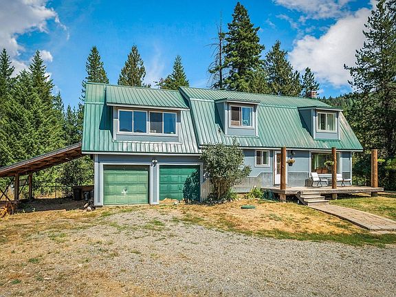 Country farmhouse on 5 acres with 36 x 48 shop. Curved driveway through mature woods opens up to established homestead. Two story home sits on a knoll with unobstructed mountain views and southern exposure. Approx 1998 sq ft with 3 Bedrooms, 2 Baths. Updated kitchen with tile back splash, quartz counter tops and stainless steel appliances. Wood burning stove in open living/dining great room. Lots of light with large windows throughout and mountain views from nearly every room. Primary bedroom suite with jetted tub, double sinks and shower. Laundry room has access to attached 2 car garage. Back deck with hot-tub. Shop has power and concrete floor is prepped for in-floor heat. Room for animals and gardens. No CC&Rs. Approx 12 miles from Sandpoint.