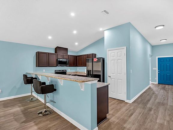 Welcome to 73 Pergola Place in the highly desirable Hunters Ridge community of Ormond Beach! Built in 2017 and beautifully maintained, this 3-bedroom, 2-bath home offers modern construction, comfortable living spaces, and a peaceful setting just minutes from everyday conveniences. Step inside to a bright, open layout featuring a spacious living and dining area that connects to the kitchen. The kitchen offers ample cabinetry, generous counter space, and a functional design perfect for meal prep and entertaining. Large windows throughout the home invite natural light, creating a warm and inviting atmosphere. The primary suite provides a quiet retreat with a sizable walk-in closet and an en-suite bathroom complete with a dual-sink vanity and walk-in shower. Two additional bedrooms are well-sized and share a full bathroom, giving everyone their own space. With 1,537 square feet of heated living area, the floor plan is designed for both functionality and comfort. Step outside to enjoy your private backyard patio—ideal for morning coffee, grilling, or unwinding in the evenings. The finished 441-sq-ft garage offers excellent storage space and flexibility for vehicles, hobbies, or workspace needs. The home’s concrete block construction, hip roof, and asphalt shingle covering provide durability and peace of mind. Residents of Hunters Ridge enjoy access to community amenities, including swimming pools, trails, parks, clubhouse facilities, and beautifully maintained landscaping. The neighborhood is known for its natural surroundings, wildlife, and nearby preserved areas, offering a sense of calm while still being close to shopping, dining, schools, and medical facilities. Ormond Beach itself is a true coastal treasure—offering pristine beaches, waterfront parks, walking paths, golf, boating, fishing, and year-round outdoor activities. With easy access to I-95 and US-1, commuting is convenient, and the area’s top attractions are just a short drive away. If you’re looking for a well-kept, move-in-ready home in a peaceful community with low-maintenance living, 73 Pergola Place is an excellent opportunity. Schedule your private showing today and experience the comfort, convenience, and natural beauty this home offers.