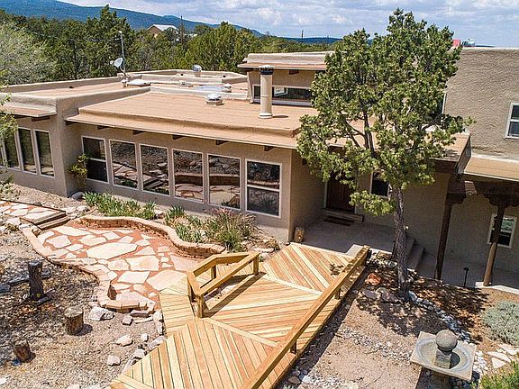 This multi-level home comes with beautiful views and is situated on the northern half of 2 adjoining parcels can create a beautiful piñon-covered 4-acre estate. Four generously proportioned bedrooms including a spacious, private Master Suite. Large office with built-in shelves provides an inviting workspace for telecommuting. Major updates in 2017 include: New flooring in Family Room and new decks and railings to aid in the enjoyment of the 180-degree views to the north. AV equipment updated in 2017. New cantilevered electric gate installed for added privacy and security. Covered RV parking with 50 amp service is part of the animal-friendly barn complex on the south half of the estate. Stalls, equipment storage, and existing corral panels offer maximum flexibility for animal lovers. Passive solar really works. Wood and electric heat available for those times when Sandia Park turns into a winter wonderland. Great place for kids and grandkids!