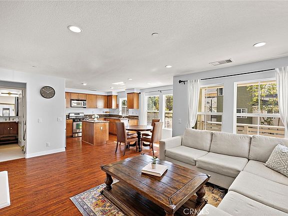 Nestled in the desirable community of Ladera Ranch, this beautifully updated 2-bedroom, 3-bath condo offers the perfect blend of modern living and convenience. Situated just a short walk from Oso Grande Elementary, the recently renovated water park, multiple local parks, and scenic Paseo walking trail, this home is ideal for those who enjoy both the tranquility of nature and the convenience of community amenities. Step inside and experience an abundance of natural light that fills every corner of this thoughtfully designed home. With custom blinds, recessed lighting, and engineered hardwood floors, the space feels both warm and welcoming. The open-concept layout features a spacious kitchen with sleek granite counters, natural tone shaker cabinetry, stainless steel appliances, and a walk-in pantry—everything you need for easy meal prep and entertaining. The convenient center island adds extra counter space and flows seamlessly into the large family room, where you can relax by the cozy fireplace or step out onto your private balcony to enjoy the fresh air. Upstairs, you’ll find two generously sized en-suite bedrooms, each with plenty of natural light and updated fixtures. The home also boasts a versatile loft area, perfect for a home office or additional living space. The updated powder room is a standout, featuring a new vanity, custom mirror, modern lighting, and new tile flooring. Additional highlights include a 2-car garage with direct access, a first-level mudroom, and plenty of storage space throughout the home. With a prime location in Ladera Ranch and a layout designed for modern living, this home is a must-see! Don’t miss your chance to experience all the charm and convenience at 73 Platinum.
