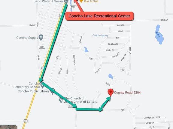 • Close to Concho Lake, Concho Lake Recreation Area, restaurants and churches
