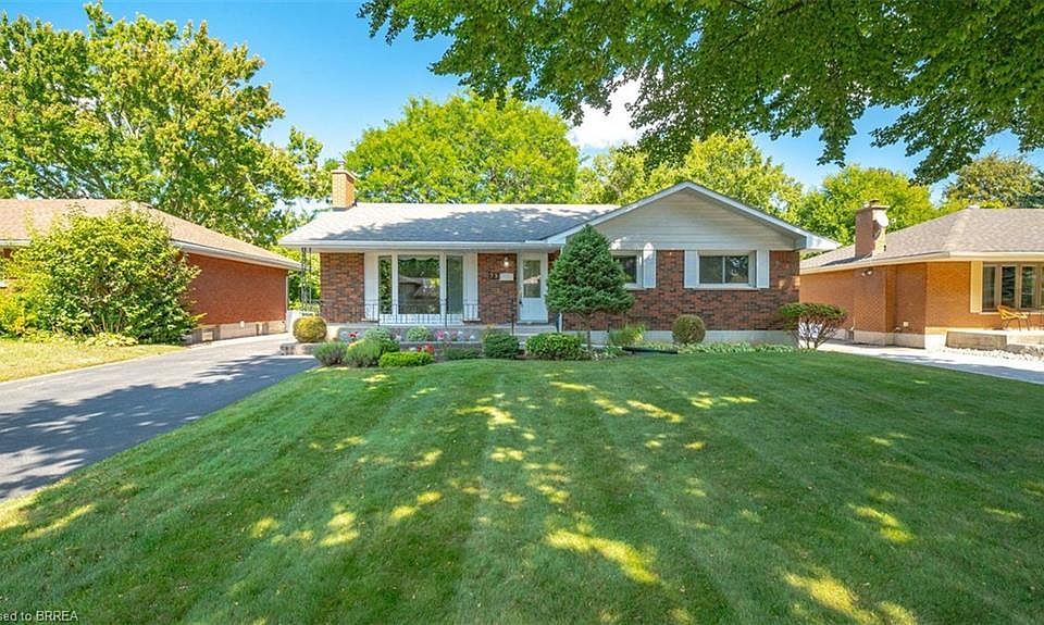 Welcome to 73 Pusey Boulevard in Brantford! This charming all-brick ranch-style home sits on a large, tree-lined lot in a highly desirable neighbourhood close to all major amenities. Offering 3+1 bedrooms and 2 bathrooms, it’s a fantastic opportunity for families or anyone in need of extra space. The main floor features a bright open-concept living room with a bay window and cozy gas fireplace—perfect for year-round entertaining. Just off the living room, the spacious dining area comfortably fits a 6–8 person table, flowing seamlessly into the generous eat-in kitchen. At the back of the home, you’ll also find a versatile den, ideal for a home office or family lounge. Down the hall are three well-sized bedrooms, including the primary, plus a 4-piece bathroom. The partially finished lower level offers even more living space with a large rec room, an additional 3-piece bathroom, laundry room, and a utility/storage area. Outside, the private backyard is surrounded by mature trees and offers plenty of shade and privacy. Enjoy summer evenings on the wooden deck or interlocking patio, with room for storage as well. All this, just minutes from golf, shopping, restaurants, highway access, and more! Don’t miss your chance to own a home in this fantastic neighbourhood. *Leaf gutters installed 2023.