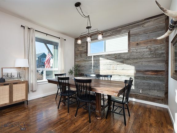 Step into this adorable 3-bedroom, 2.5-bathroom single-family home spanning 1841 square feet. Boasting a thoughtfully designed open-concept layout on the first floor, the kitchen seamlessly flows into the living room making this space perfect for entertaining. Custom touches, including reclaimed accent wood walls and a limestone fireplace with a rustic wood mantle, add character and warmth. Upstairs, a spacious master suite with an attached bathroom and walk-in closet awaits, alongside two additional bedrooms and a well-appointed bathroom. Ample storage throughout, a two-car garage, a sizable fenced backyard with stunning Bridger Mountain views, and a south-facing driveway for winter convenience make this home a true sanctuary. This home is nestled in a friendly community and conveniently located near local amenities. Don't miss the opportunity—schedule your private tour today!