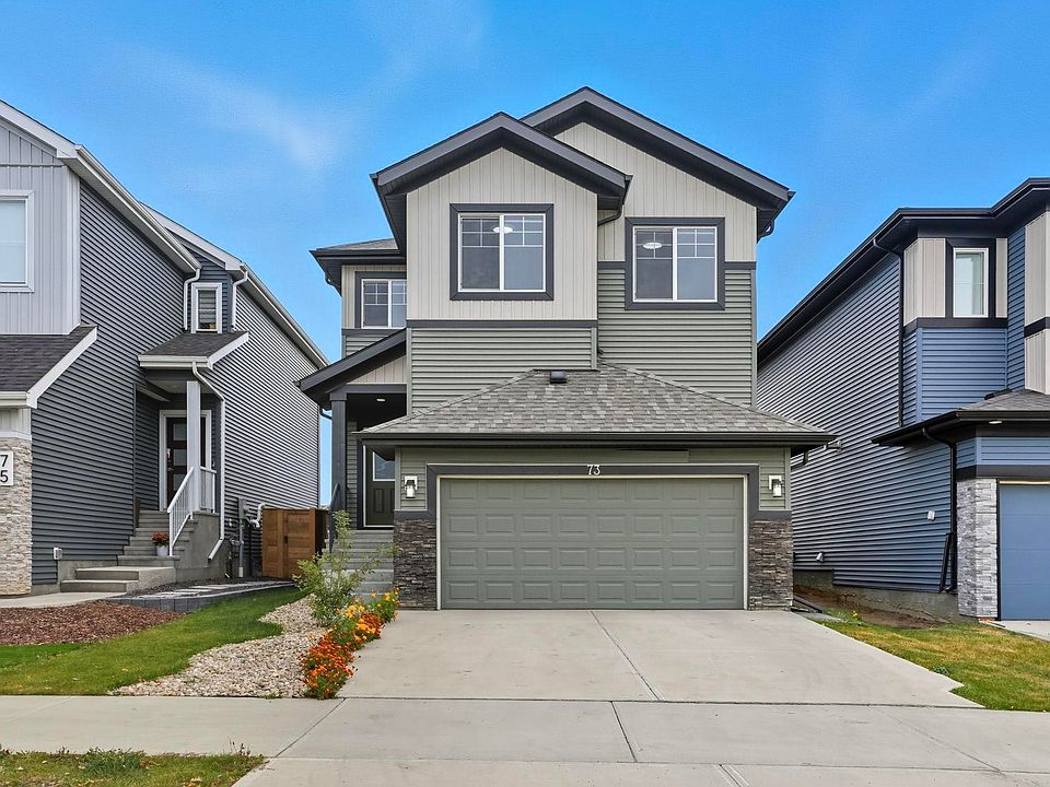 Welcome to 73 Redspur Drive in St. Albert’s sought-after Riverside community! This stunning 2-year-old home by Parkwood Master Builder offers 4 spacious bedrooms upstairs, 3 full baths, and 2 main floor living areas—perfect for family living and entertaining. The open-concept kitchen features modern finishes plus a spice kitchen for added convenience. A separate side entrance nad 9 feet basement offers potential for a future suite. Enjoy an attached double garage with floor drain and a beautifully designed layout with room to grow. Located steps from Lois Hole Provincial Park, Red Willow Trails, and Big Lake, you'll love the natural beauty that surrounds you. Quick access to Ray Gibbon Dr. and Henday makes commuting a breeze. This move-in ready gem is waiting for its new owners—don’t miss it!