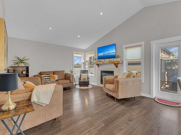 Cozy and comfortable, this beautiful modified bi-level in Ryders Ridge offers the perfect blend of style and functionality. Ideally located just moments from trails, parks, schools, and amenities, it's a home designed for both convenience and everyday living. The open concept main floor showcases a spacious living room with a gas fireplace and plenty of room for a large sectional. Adjacent to the living room is a dining area with garden doors that lead to a private deck featuring full privacy screens, overlooking the fenced yard with an RV gate. The kitchen is sure to impress with its large island with seating, stainless steel appliances, corner pantry with built-in solid shelving, full tile backsplash, and updated lighting.