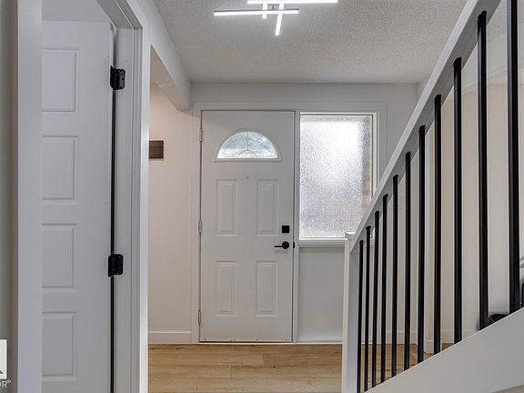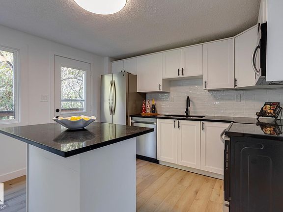Welcome to this beautifully updated 2-storey townhome in sought-after Ridgewood Terrace, St. Albert featuring over $40,000 in upgrades. This property features rough 1600 sq ft of finished living space along with 4 spacious bedrooms & 1.5 fully remodelled bathrooms, making this home perfect for families or investors. The main floor boasts newer vinyl flooring, fresh paint, updated doors & baseboards. Enjoy cooking in the upgraded kitchen featuring white shaker cabinets complimented with quartz countertops, tiled backsplash, & a full set of new stainless steel appliances. The finished walkout basement on to a ravine adds extra living space with direct outdoor access—ideal for entertaining or relaxing. Updates include newer lighting & plumbing fixtures throughout, making this home truly move-in ready. Located in a quiet, well-maintained complex close to schools, parks, & amenities, this townhome offers incredible value in a prime location. Don’t miss your chance to own this stylish and functional property!