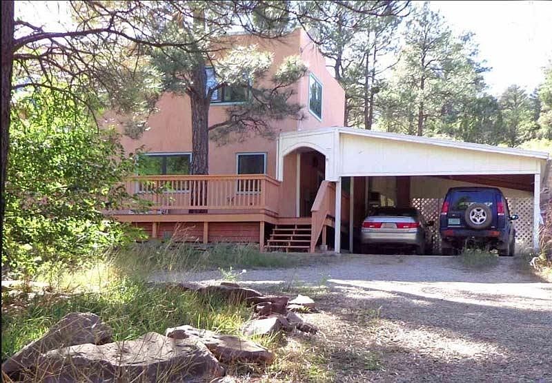 Two-Story Loft Dwelling in the Pines! 3 acres just 8 minutes to Las Vegas. Beautiful custom home in a lovely private setting. Open-concept 1st floor is light & bright with windows & patio doors to the wrap-around deck. Ceramic tile floors with radiant under-floor heat. First floor bedroom is next to the full downstairs bath. The 2nd floor owner's retreat has a huge study-sitting area, walk-in closet & master bath with jetted tub & separate shower. This spacious, beautiful home has sunlight glittering on ponderosa pine trees from every window. Enjoy our gorgeous climate on the flagstone Patio, in a private nook just past the deck -- perfect for morning coffee or an afternoon iced tea. Convenient to I-25, Las Vegas & Santa Fe.