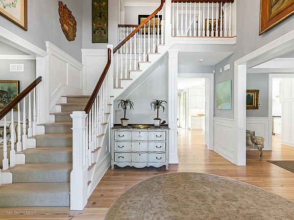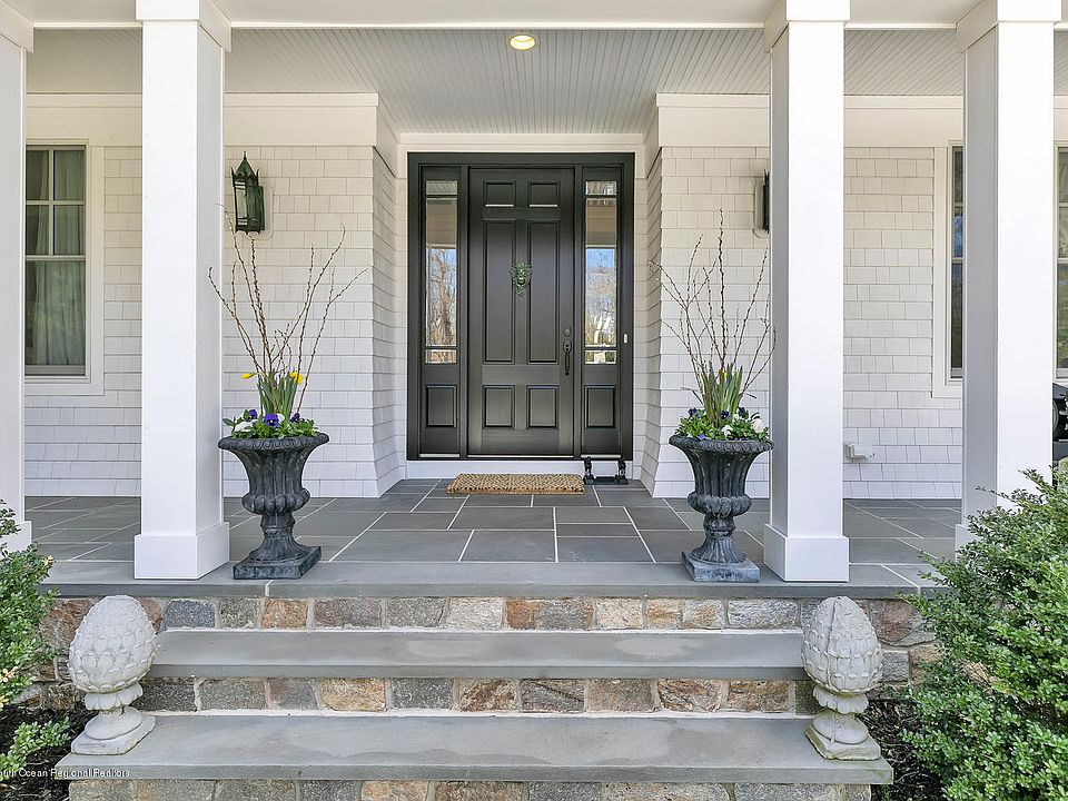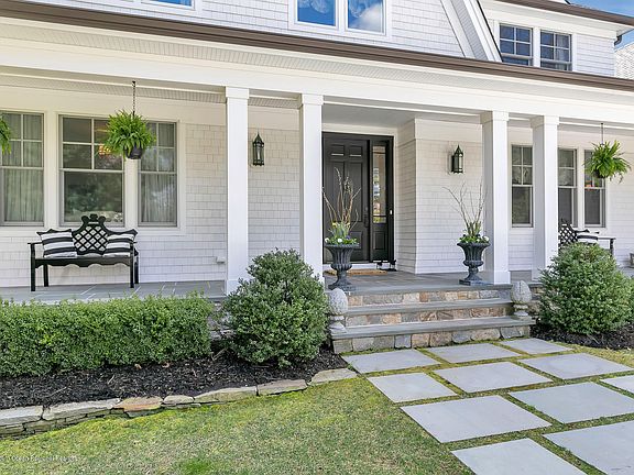 Handsome 2014 construction presents attention to detail from the gambrel roof, eye brow window, wide pine floors to bluestone front porch. A spacious foyer with handsome staircases that lead to the second floor and basement. Large gourmet kitchen with granite center island, dining area and built-in bar opens to the family room. The first floor bedroom w/full bath & finished basement w/bath provide plenty of extra space for guests. Backyard entertaining is a breeze with its large built-in grill area, flagstone patio and custom pergola. A whole house generator offers peace of mind. The second floor features 4 bedrooms, 3 baths, office space and laundry room. A short bike ride to the beach or car ride to the ferry to NYC makes this prime location for small town shore living and NYC commuting.
