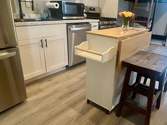 Cozy Furnished studio, with queen sofa sleeper, (optional loft bed) with full kitchen, full bath, washer/dryer, Bluetooth fan + pool & back patio enchanted access. Modern finishes, natural light, and a great location near shops and freeway. Lease description: Owner covers utilities and renter is not responsible . First month's rent and security deposit due at signing. No smoking or vaping allowed inside the property. Small pets considered with additional deposit. Street parking available. Shared backyard amenities include access to the pool and deck. Please respect quiet hours (10 PM 7 AM), clean up after use, and be mindful of shared spaces. Guests permitted for reasonable use of pool/deck with prior notice. Lease terms flexible (month-to-month or longer). Renter's insurance optional but recommended.