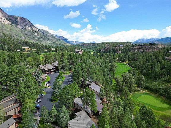 Experience refined mountain living nestled within the Glacier Club, offering not only elevated style and luxury, but also access to resort style amenities. Looking over the 8th hole of the Valley Course, this meticulously upgraded residence is rare to find, with a massive remodel (everything new!) and thoughtful improvements throughout. The home offers open concept living with a sophisticated blend of natural materials and sleek, contemporary detail. When entering the home, you’re greeted by the gorgeous waterfall island (Fantasy White Satin Quartzite), custom walnut cabinetry and doors, GE Café appliances, an induction cooktop, Waterdrop drinking filtration system at the sink, and pop up outlets providing convenience without disrupting the clean aesthetic. The stunning bar area features a sleek mobile bar, custom built-in cabinetry with glass-front display cases, a wine refrigerator, and gorgeous granite countertops, perfect for a dedicated dining or entertaining space. Flowing into the main living area, a floor to ceiling tiled Medota gas fireplace serves as a cozy focal point. The space also includes acoustic panels that enhance both ambiance and sound quality. Expansive floor to ceiling windows frame views of the surrounding mountains and golf course. Elegant light stone tile and Kardean luxury flooring throughout the home. The spacious deck offers an ideal setting to relax, take in the mountain scenery, local wildlife, and watch the golfers. The living area also features a convenient ¾ bathroom and a stacked washer dryer. A built-in laundry chute from the upper level adds extra ease-no need to carry laundry downstairs! Unlike other units, the original spiral staircase was removed and replaced with a functional, full size staircase, illuminated by an elegant overhead light fixture. Expansive windows with electric blackout shades to provide both natural light and privacy, while oversized glass sliding doors offer the option to separate the upper level from the main living area without sacrificing the natural light. The spacious upstairs bathroom features a deep walk in closet, under counter lighting, heated tile floors, anti-fog mirrors, and dual sinks. An additional air conditioning vent on the upper level keeps it very cool during the summer months. Other upgrades include new electrical wiring, all new plumbing, brand new water heater, forced air heating and central A/C, fully reskimmed wall texture throughout the interior. The flooring on the lower level has been leveled and finished with long boards that are easy to replace if needed, designed with both durability and maintenance in mind. The home comes fully equipped with a Sonos sound system, TV, soundbar, and subwoofer for elevated media experiences. This home has spared no expense, showcasing thoughtful design, elegant high-end finishes, and exceptional attention to detail throughout. The condo provides easy access to the club amenities, including the 18-hole Valley golf course, two restaurants (The Mind Shaft and The Prospector), an amazing gym (with saunas), two pools (one indoor, one outdoor and hot tub). Along with tennis and pickle ball courts, even winter tracks for snowshoeing and cross country skiing, ensuring there's something for everyone to enjoy. With its proximity to Glacier Club's premier offerings and its unparalleled blend of luxury and natural beauty, this mountain condo epitomizes resort-style living at its finest. 26 minutes from Downtown Durango, 16 minutes from Durango Mountain Resort, 45 minutes to Silverton. This home exceeds expectations at every turn!
