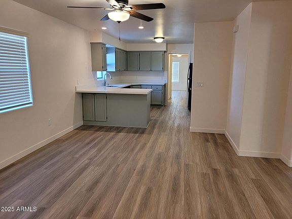 Spacious upstairs apartment in downtown Wickenburg. Unfurnished, upstairs apartment BEAUTIFULLY RENOVATED in downtown Wickenburg. 2 bedroom, 2 baths, plus flex room with laundry, including washer and dryer. Spacious open floor plan. Plank flooring, window coverings, refrigerator, stove, dishwasher, ceiling fans, and a spacious deck. Please ask LA how your clients can each get an application link to apply. $65 per application/per adult. Rate listed is for a 12 month lease. Pets on Landlord approval only. Landlord pays for water, sewer, and trash service.
