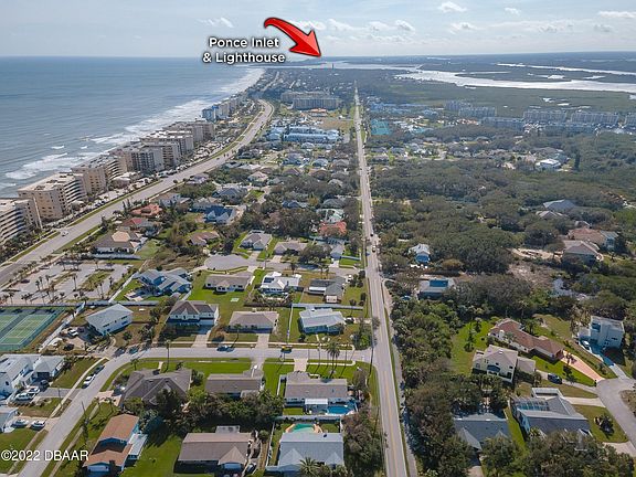 Live the beachside Ponce Inlet lifestyle in this beautiful pool home located within steps of the no-drive beach! Direct community beach walkover makes access to the Beach convenient! This very well cared for home boasts an in-ground pool & spa featuring new finish, new pump and new salt chlorinator! Lots of privacy with lush landscaping on a large corner lot, vinyl fencing, an outdoor bar area and a covered porch right near the pool. Inside is a beautiful tiled entryway with natural bamboo flooring in the living area and an upgraded kitchen with new cabinets & stainless steel appliances. The primary bathroom has been recently remodeled and the second bath features outside access to the pool. Roof only 6 years old. Hurricane shutters protect the windows. Large 2 car garage with laundry and newer washer/dryer stays with the home. With nearby beach access, Ponce Inlet Lighthouse, restaurants, parks and nature trails, you just can't go wrong in Ponce Inlet! By appointment only.
