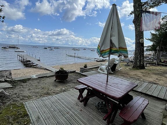 Feel at home in this rustic and comfortable beachfront summer cottage on Sebago Lake. This charming three-bedroom, one-bathroom cottage offers a spacious kitchen with a large dining area, a cozy living room leading to an enclosed porch with stunning lake and beach views. The cottage is equipped with internet, cable, and phone services, and all bedrooms are located upstairs, each featuring ceiling fans. Enjoy outdoor dining with two picnic tables, and take advantage of the dock and mooring facilities.