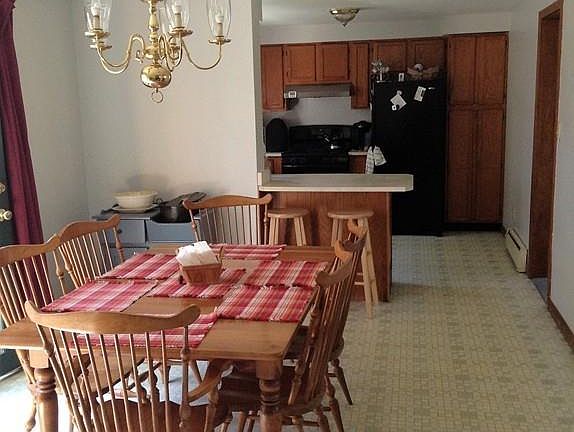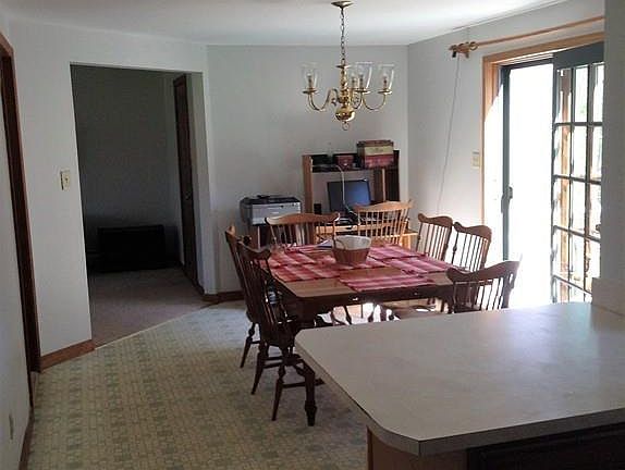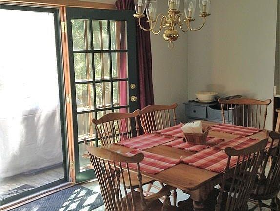 Spacious cape sited on lovely bucolic lot with stonewalls, gardens and fruit trees. Home features large open kitchen dining room with French doors to deck, a den, living room with wood stove, and three bedrooms plus 1 1/2 baths. Master has double closets. Improvements include a redone roof with architectural shingles in 2007, and a new heating system in 2015. Other recent upgrades include a spacious shed, bath remodels, French doors, wood stove, and gutters. Enjoy this peaceful country setting with blueberry bushes, fire pit, fruit trees, stonewalls and even a lovely seasonal view of a spring fed pond.