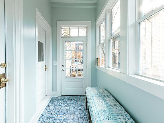 The gourmet kitchen features a Miele induction range and Sub-Zero refrigerator, combining sleek design with superior functionality. The spa-inspired full bath showcases radiant heated marble floors, while the powder room adds convenience and charm. Beautiful custom woodwork highlights the home's architectural character. European radiators and electric heat pumps provide efficient heating and cooling.