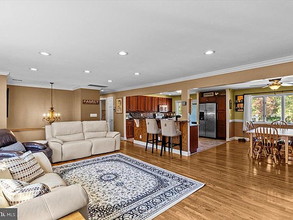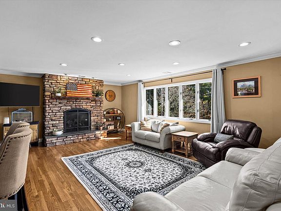 Beautifully maintained oversized 4 BR / 2 Bath Bi-Level on close to 2 acres of level cleared property! 1st level has a BR Full Bath Huge FR w/Stone woodburning FP and sliders to yard. 1 car direct entry garage. Upper level features all hardwood flooring, gorgeous Kitchen w/SS appliances, Granite counters cabinets galore Slider to Trex deck and a Breakfast bar that is open to large DR and LR w/Gas Stone FP. Extra large Master BR has double closets 2 addl BR's Full Bath w/Jet tub/Separate Shower. Outside is an entertainers delight - Fenced In-Ground Pool, Covered patio w/outdoor kitchen / shower /Gas grill hookup / wide open yard. 2nd separate Garage w/electric . New Septic, New Decking