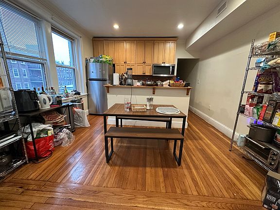 Size & Layout: A large 4-bedroom unit in Brookline with an open floor plan, high ceilings, and large windows for ample natural light. Living Space: Generously sized living room with hardwood flooring. Kitchen: Updated kitchen with nice appliances. Bedroom: Spacious enough for a king-sized bed Bathroom: Nice tiled showers, updated vanities, and plenty of storage.