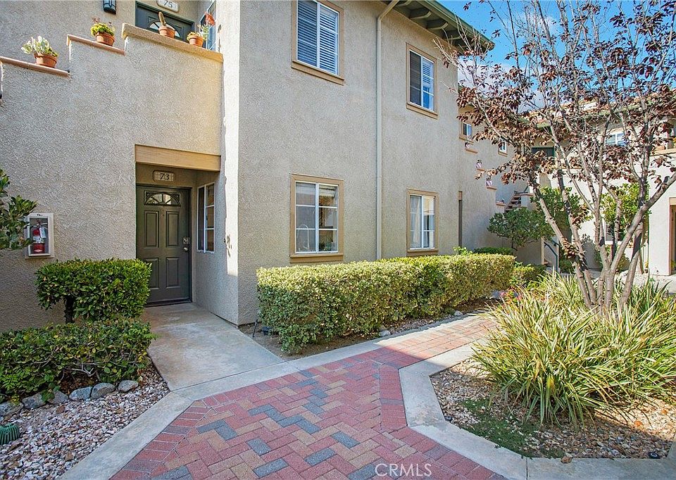 Charming single-level residence located in the scenic of Tijeras Creek Villas. A picturesque courtyard leads you to an inviting and upgraded open and light filled floor plan. The spacious living room features a stacked stone two-sided fireplace with gas logs and a French door that opens to a private, covered patio. The cheerful kitchen includes windows on two walls overlooking the private courtyard. The kitchen has been updated with white cabinetry, granite countertops, recessed lighting stainless appliances that include 5 burner gas range, microwave, dishwasher and refrigerator. The primary bedroom opens through tall sliding doors to the peaceful patio and also includes a mirrored closet with an organizer system. The remodeled bathroom features a white shaker style vanity, framed mirror, brushed fixtures and lighting plus additional cabinetry with glass doors providing additional storage. This home also offers a full-size front-loading washer and dryer (included), a hall closet, and additional storage spaces off the patio. You'll also appreciate the oversized one-car garage for even more storage with new roll up garage door, opener and walking access door. Community amenities include two pools (one with Tijeras Creek Golf Course views), a spa, sauna, and fitness center, along with full access to SAMLARC amenities such as pools, sports courts, parks, and the popular Lago Santa Margarita Beach Club with private events. Tucked in a private setting surrounded by views of trees and mountain views. with maintained landscaping and cul-de-sac location ensures a tranquil living experience. This home offers both comfort and convenience—just a short walk to the award-winning Arroyo Vista K-8 school in CA's safest city.