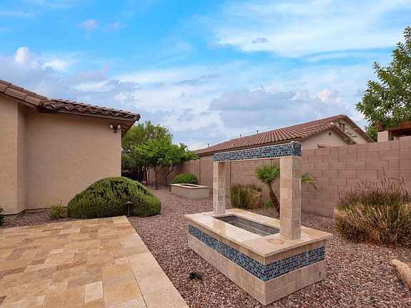 Fulton Ranch Beauty on a Quarter Acre Premium Corner Lot!! Nice courtyard with gate. Home boasts of 4 Bed, 2.5 Bath, Den AND a massive office off the gated front courtyard. Living room & formal dining area are separate from the gourmet kitchen, breakfast nook & family room that overlook a spectacular backyard! Master Suite with soaking tub & separate shower combined with dual sinks make for spa like living every day. Woodlice tiles in all wet areas. Granite countertop. ceiling fan in all bedrooms. Backyard has extensive travertine flooring, artificial turf, firepit. Lake community with waterfalls, playgrounds, walking trails, close to shopping and great Hamilton high school. W/D/R included. 2 car garage. R/O system and water softener included. EV charger included.