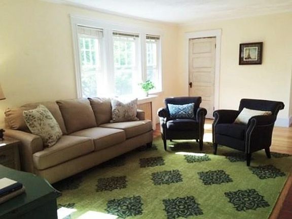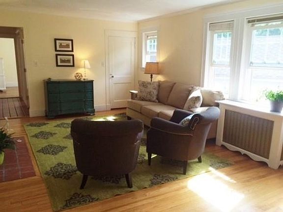 Located in Newtonville's highly desirable Cabot School district, this delightfully warm and charming 2-3 bedroom condominium with 1 garage parking and 1 off-street parking spaces, boasts a wonderful floor plan, abundant natural light and tree-top views. Inviting, generously sized living room features ceiling molding and wood-burning fireplace. Open dining room with ceiling molding and kitchen with a breakfast bar, gas stove, and stainless steel appliances. Beautifully gut-renovated bathroom with marble tiling. Heated sunroom with closet, previously used as a 3rd bedroom or can be used as a home office. Ample additional storage in basement as well as in approximately 44'x25' walk-up unfinished attic. Also featured are hardwood floors, replacement windows, and a tranquil oasis-like common level backyard with a patio. Separate heating system and washer/dryer, 2011 exterior painting, and 2007 roof. Near shops and restaurants, Mass Pike, commuter rail and the express bus.