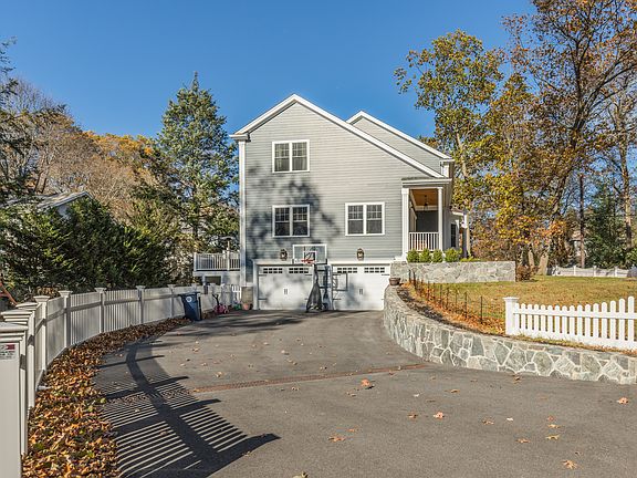 Ideally located at the end of a dead end street in one of Newton's most desirable neighborhoods, this newer construction home has it all just steps to the Commuter Rail & highways. The home includes a gorgeous master suite w/ vaulted ceilings, his/her walk-in closets and a spa-like bath, w/ additional 3 bedrooms, 2 baths and laundry on the second level. On the main floor you'll find a grand 2-level foyer opening to a dream kitchen w/ 8 1/2 foot island and top of the line appliances. The kitchen opens to the dining/living spaces w/ fireplace, huge windows and french doors exiting to the farmer's porch.The lower-level includes a large walk-out playroom, 5th bedroom, full bath, utility and 2 car garage. With Coffered/tray ceilings, custom built-ins and double crown moldings, integrated surround sound system and C/V, the interior of this home is breathtaking! On a large 1/3 acre lot in a serene setting, w/stone patio, bi-level deck, & fenced yard, you'll enjoy true indoor/outdoor living.