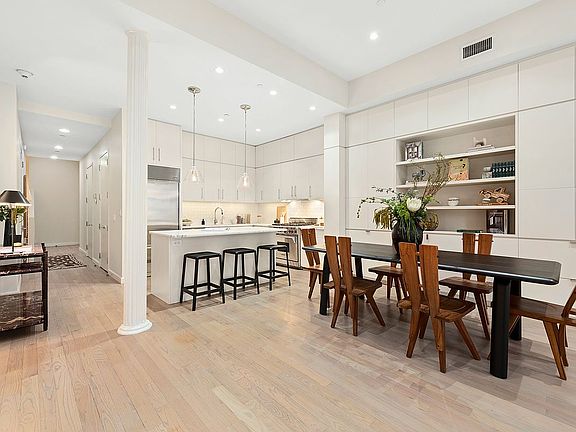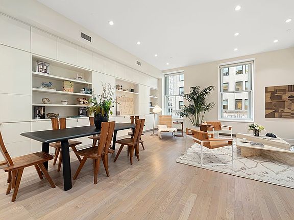 This is This exquisite four-bedroom, three-bathroom loft embraces a chic contemporary aesthetic within the bones of a classic Tribeca loft to create a bright and airy layout with premium finishes and exceptional storage — including a 100-square-foot private storage room — in a full-service condominium.