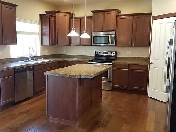 This fantastic home features beautiful hardwood flooring, stainless appliances, gorgeous custom cabinetry, open concept kitchen living space with fireplace, separate formal dining that could also be an office, and a lovely primary suite with 5 piece bath and huge walk-in closet.
