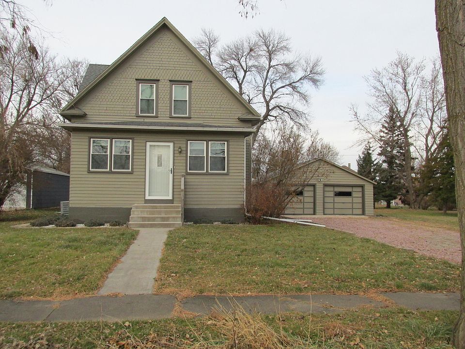 A cozy, affordable home on double lot just minutes from Mitchell, updated kitchen, newer windows, furnace, shingles and light fixtures. Bedroom on main level has 3/4 bath, open floor plan for kitchen, dining area and living room, enclosed cozy front porch, upper level has large bath w/claw foot tub, large bedroom w/double closets, nice outdoor concrete patio. electric $132 mo. ave.