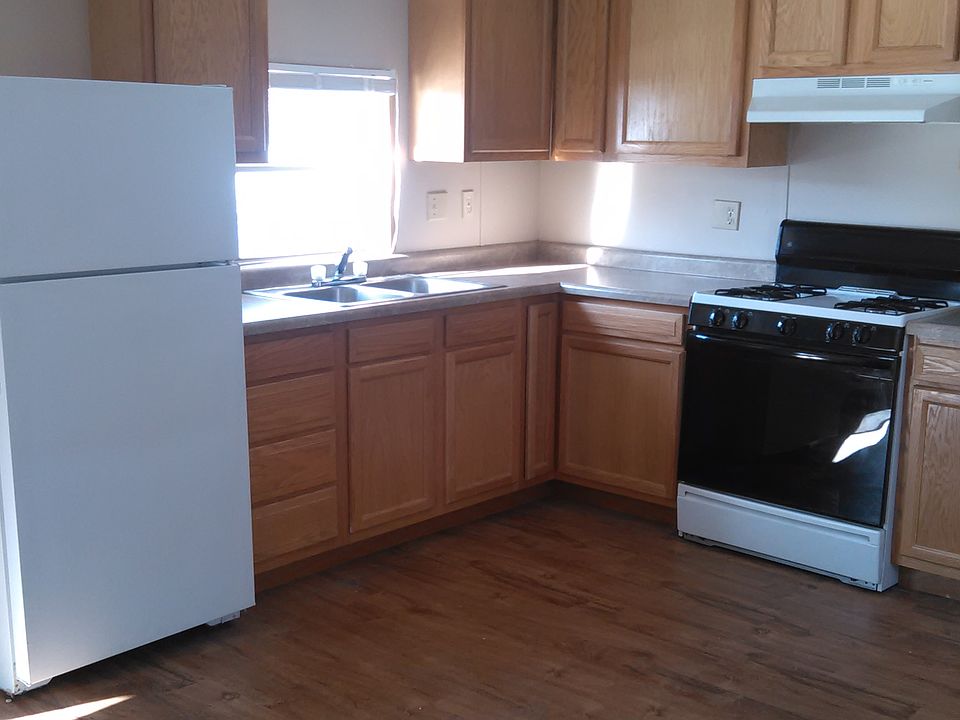 Rent to Own mobile home. Buy now and don't pay lot rent until April. Newly remodeled 2 bed 1 bath in family friendly park. Beautiful kitchen with new cabinets countertops and hardwood flooring that extends into the living room. Bedrooms are carpeted with sizable closets. Includes fridge, stove, and new furnace. Fresh paint inside and out. $698 down and $698 a month.