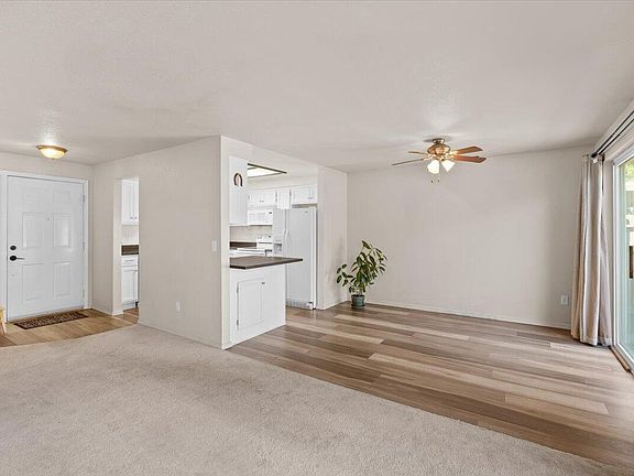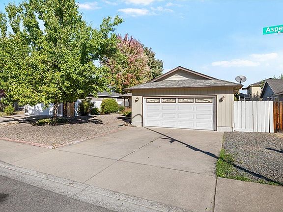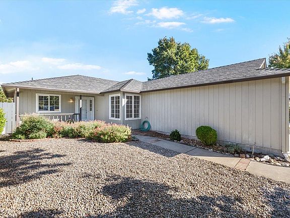 The open and friendly floorplan of this single level home will appeal to many buyers. The light and bright kitchen opens into the dining area and living room, with a sliding glass door into the back yard. Large windows bathe the living areas in sunlight. The primary bedroom has a large walk-in closet and en suite bath. Second bedroom with double doors could easily work as a home office or guest room. The third bedroom also has a large walk-in closet. Dedicated laundry room for convenience and a two-car garage with built in shelving. The front yard is low maintenance. The fully fenced backyard includes a covered pergola area, gardening bed area and mature butterfly bushes along the fence for privacy. Located in a desirable, friendly, and quiet neighborhood with slower traffic. Near South Medford High School and minutes from shopping, dining and medical facilities. Comfort and convenience in one perfect package! Price reflects the opportunity for buyer to make modest improvements.